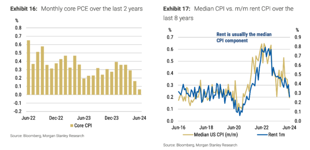 大摩认为,6月核心CPI数据的关键结论是,通胀正在逆转2024年第一季度看到的强劲读数,同时住房通胀的显著下降使得更加冷却的通胀读数非常具有可持续性。
