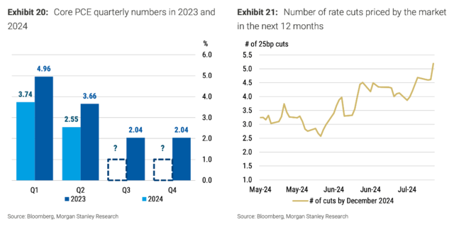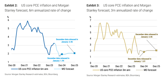 大摩认为,美国核心PCE通胀率将在2024年下半年回落至2%,按3个月和6个月的年化变化率计算。而根据这一预测,核心PCE通胀的3个月和6个月年化变化率实际上低于2%。